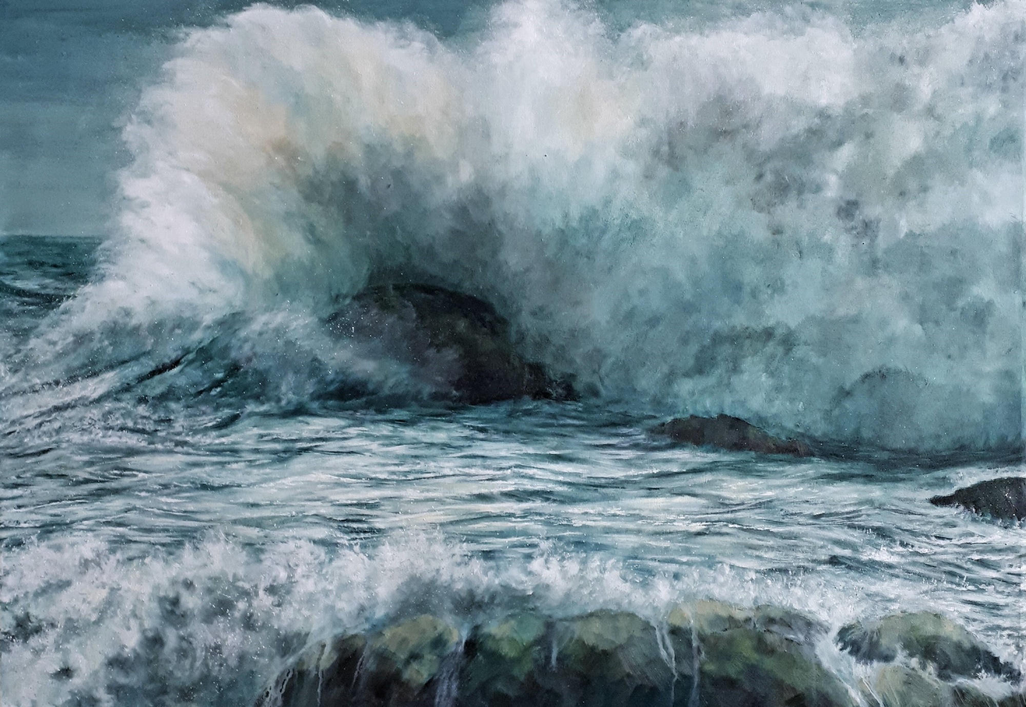 My work reflects on memory and repetition. Current work continuous to explore the continuous motion of the sea and creating landscapes, especially meadows. Completed paintings and work in progress can be viewed at any time in my studio in St Lukes church on request or during the biennial event.